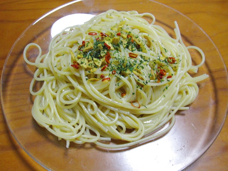 はすは辛いの苦手なので、輪切り唐辛子をよけながら食べていた。