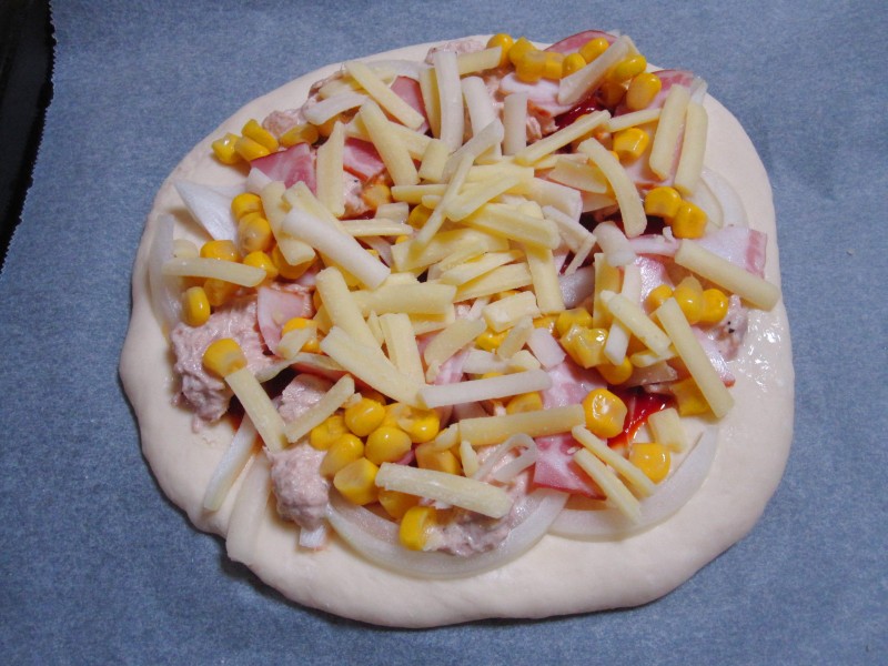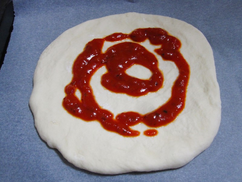 ピザソースをもっとたっぷり塗っても良かったかも?