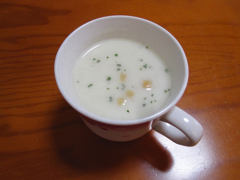 ↑朝ご飯。カップスープ。