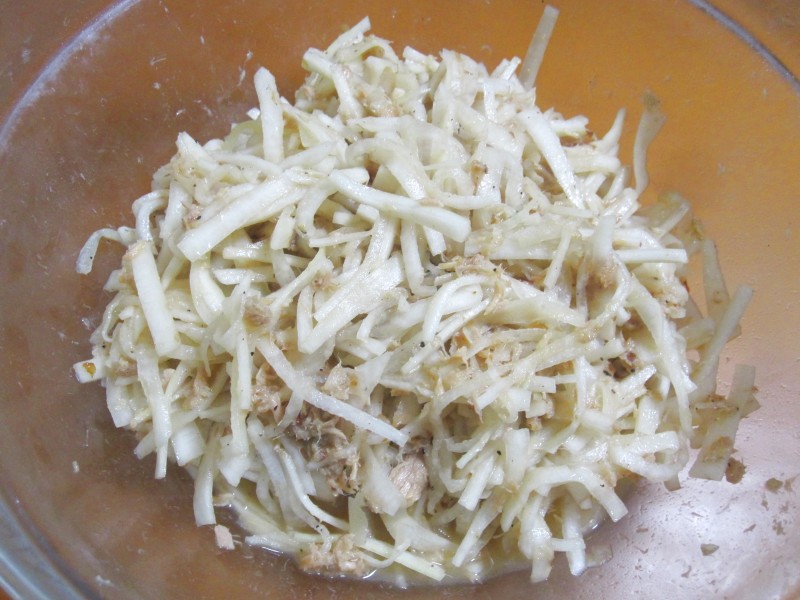 千切りにして、ツナ・黒胡椒・柚子ポンであえただけ。