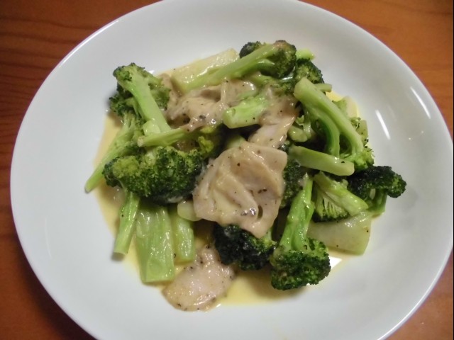 ↑鶏ハムとブロッコリーのチーズ炒め。