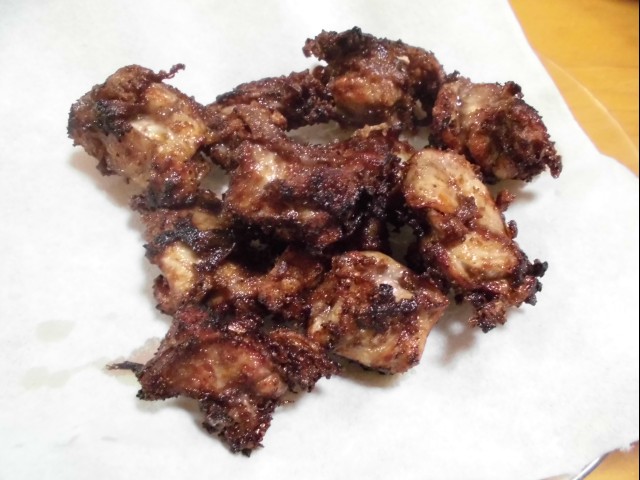 ↑夫の人特製・鶏の唐揚げ。赤ワイン風味。