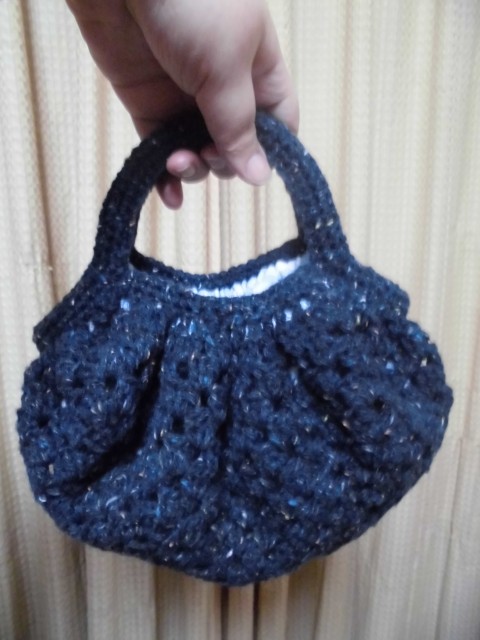 ↑毛糸で編んで、小さめグラニーバッグを作った。