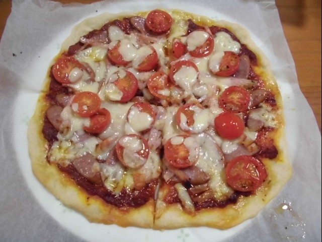 ↑トマトピザも焼けたー。