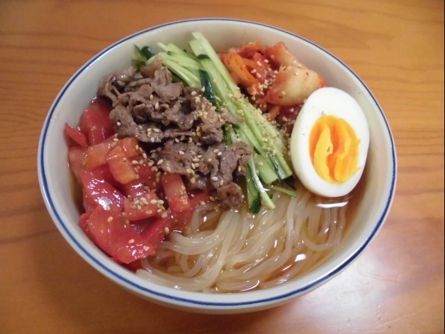 我ながらおいしく作れた冷麺を食べて、満足満足。