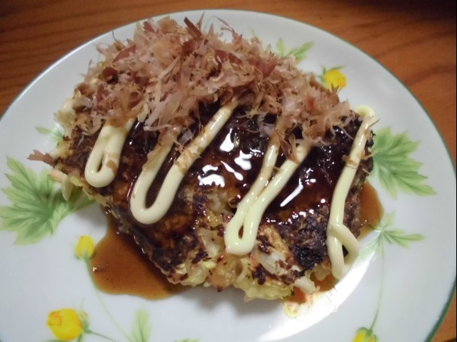 ↑ソース・マヨ・かつぶしをかけて、できあがり~。