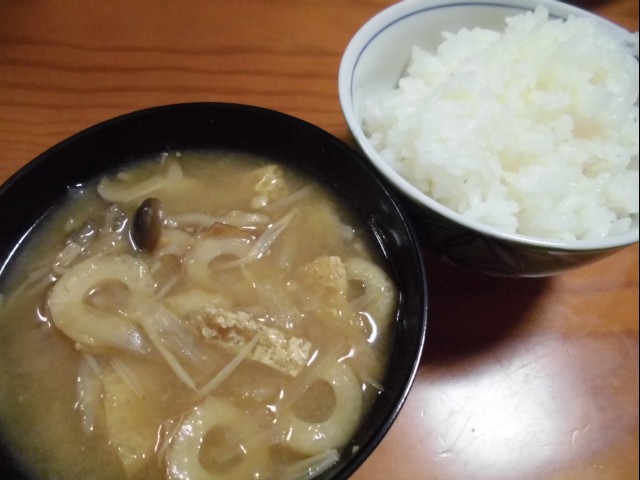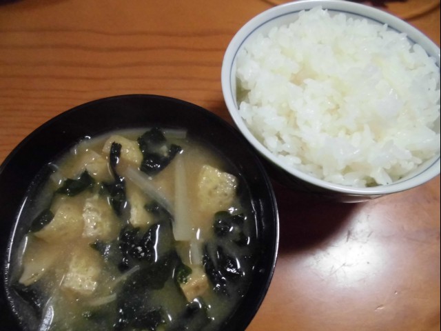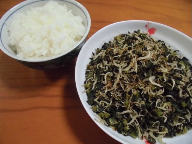 ↑夜ご飯。ご飯・大根葉とシラスのふりかけ。