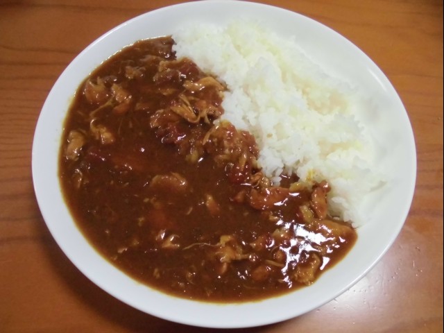 チキンは骨だけが残って見えるけども、ルーは肉々しい。
