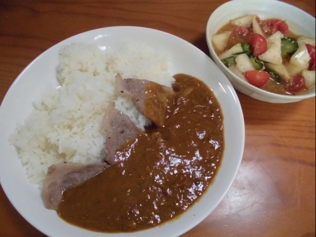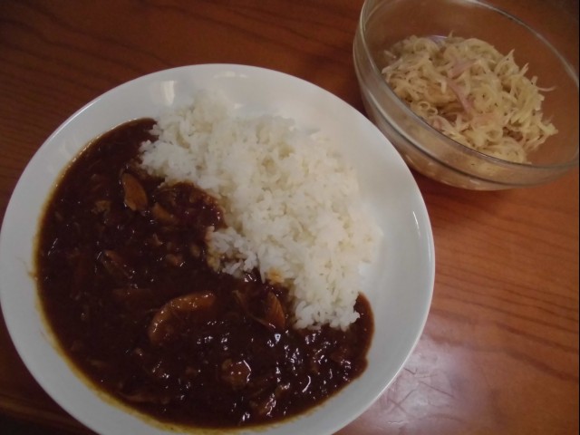 昼はまだ辛くて、チーズでごまかして食べたカレー。