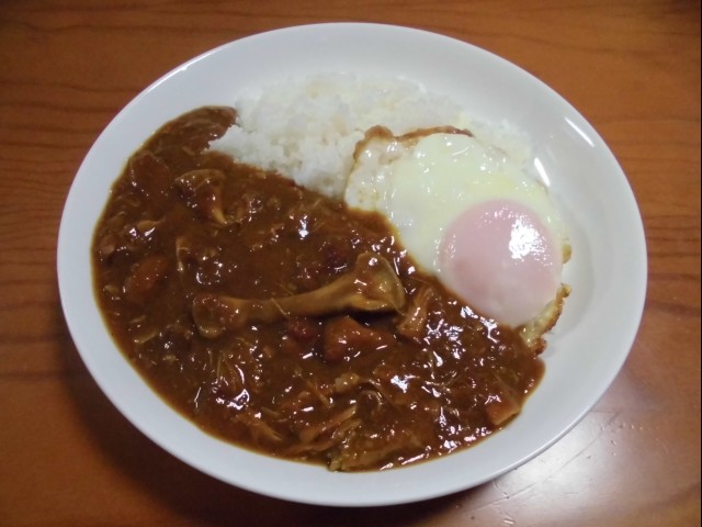 ↑夜ご飯。カレー。目玉焼きトッピング。