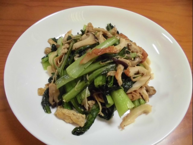 ざくざく刻んで、シラスやゴマと一緒にフライパンで炒った。