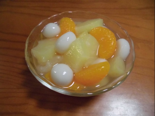 こないだフルーツ白玉に使ったパイン缶&みかん缶の残りを使用。