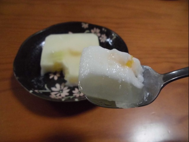 固まったゼリーを皿にひっくり返して出したら、2層だった。