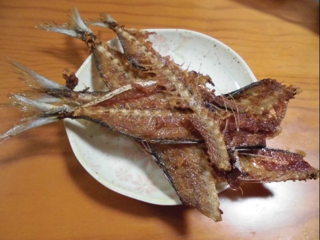 3枚におろした中骨の部分は、カリっと揚げて骨せんべいに。