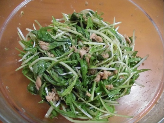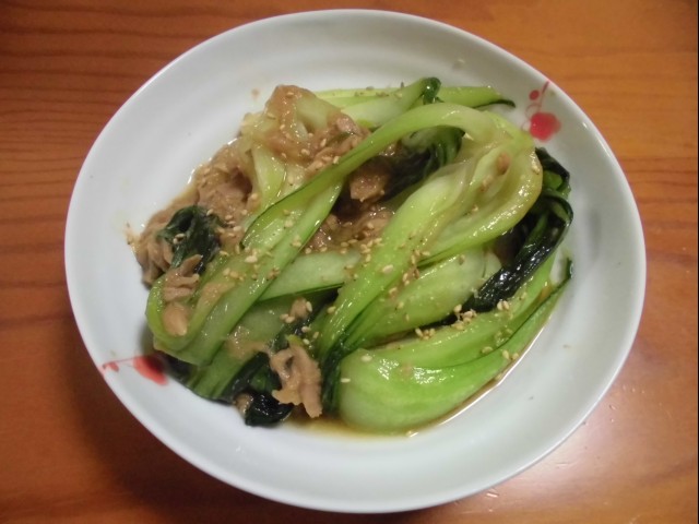 ↑チンゲン菜とツナの炒め物。夫の人にとても好評。