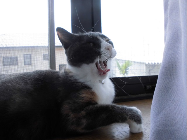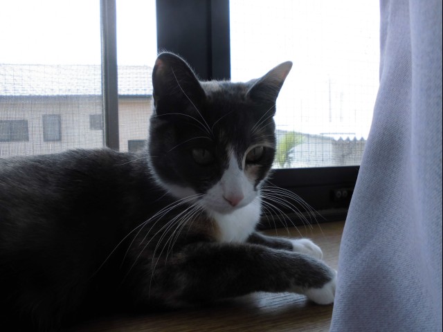 レンたんは、風が通る出窓でリラックス。