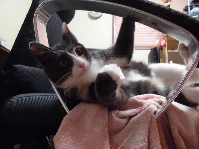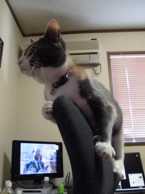 ↑今日のレンたん。夫の人のパソコン椅子で、やりたい放題。