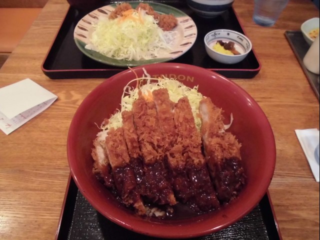 ↑味噌カツ丼。奥は夫の人のロースかつ定食。
