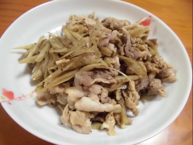 ↑牛肉とニンニクの芽の炒め物。夫の人が作ってくれた。うまうま。