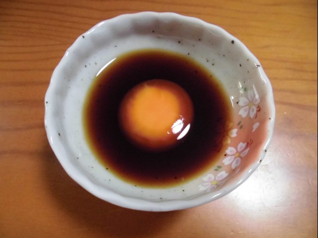 黄身を割ってみると、中まで醤油色にはなっていなかった。