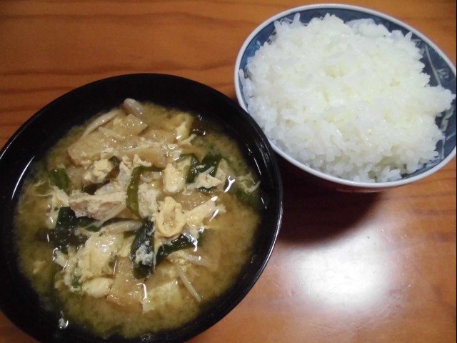 ↑昼ご飯。味噌汁・昨日の炊き込みご飯。