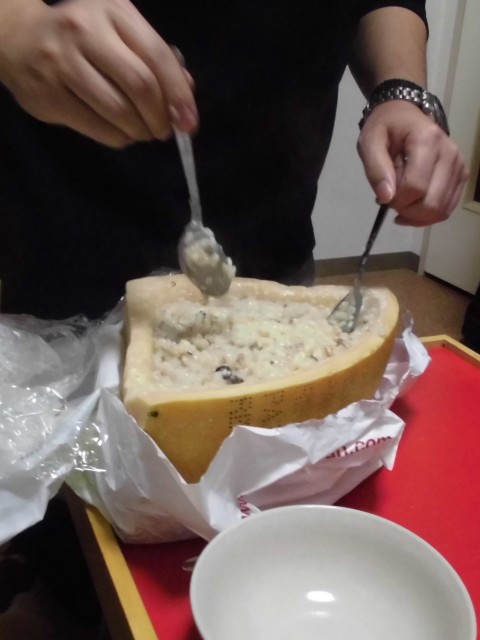 ↑RINさんが作ってくれた、キノコ入りチーズリゾット。