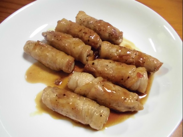 ↑RINさんが作ってくれた、えのきを豚肉で巻いたやつ。
