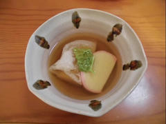 大根と一緒のカラスミみたいな食べ方で、後味さっぱり。
