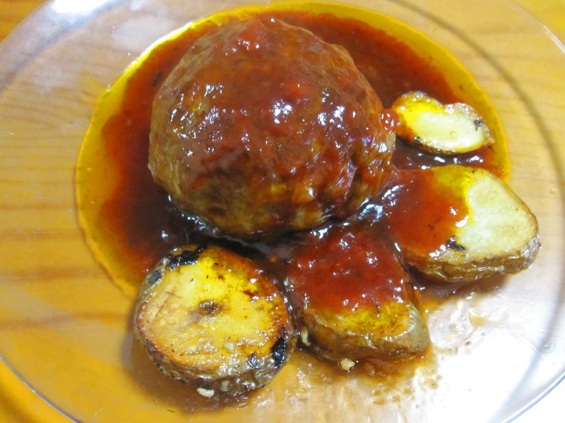 ↑夫の人特製・ハンバーグ。付け合わせは揚げ焼きポテト。