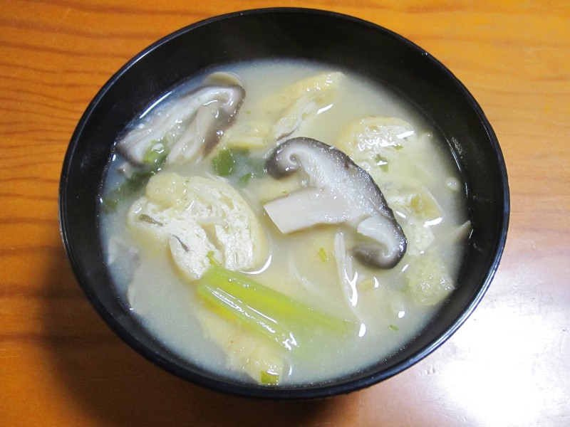 味噌汁の肉団子には、刻んだ大葉をたっぷり混ぜた。