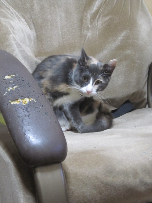 レンたんは、いつもの壊れマッサージチェアを拠点にして。