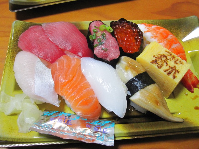 お寿司はパックのふたを外して並べて、好きなネタを取り合って食べた。