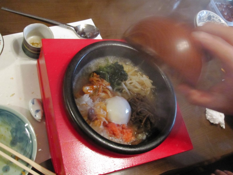 この石焼ビビンバ用の石鍋(?)と赤い箱も、ゆずってもらったもの。