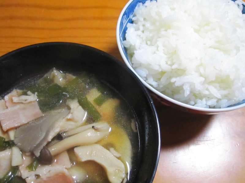 ↑夜ご飯。キノコ汁・ご飯。