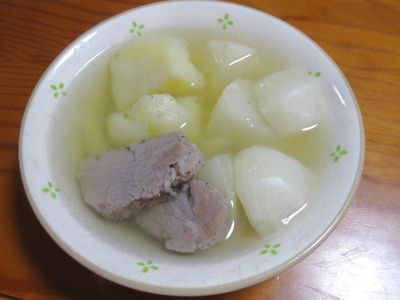 ↑塩豚・ジャガイモ・カブのポトフ。