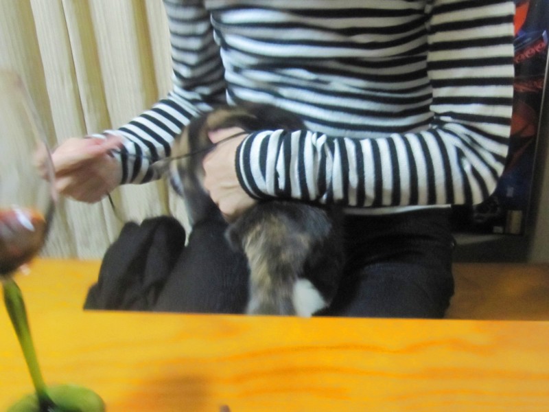だんだん近寄ってきて、やじ君がヒモでじゃらして遊んだりして。