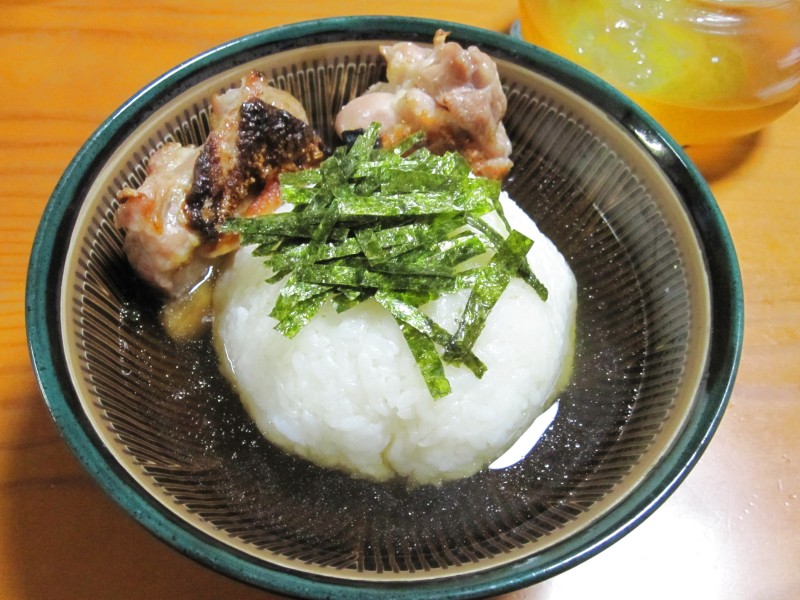 ↑たっぷりダシをかけ、焼き鳥ダシ茶漬け、完成~。