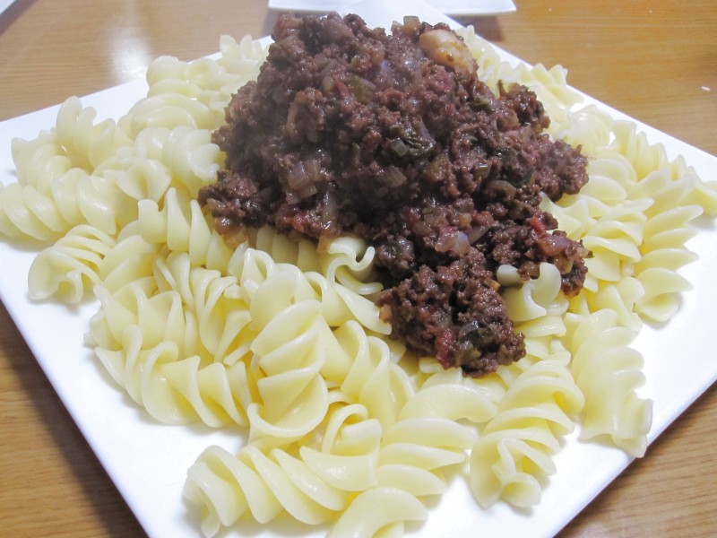 ↑ぐるぐる螺旋にミートソースがからんで、うまうま!