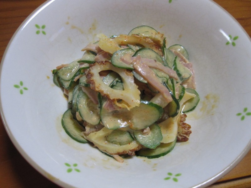 ↑キュウリ・ハム・ちくわのコチュマヨサラダ。