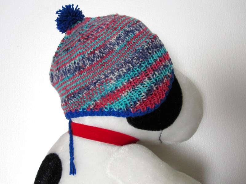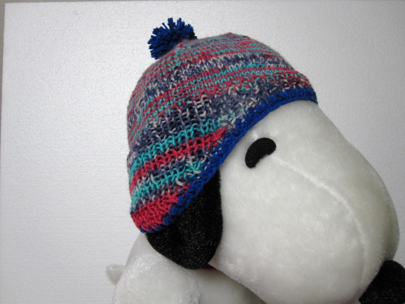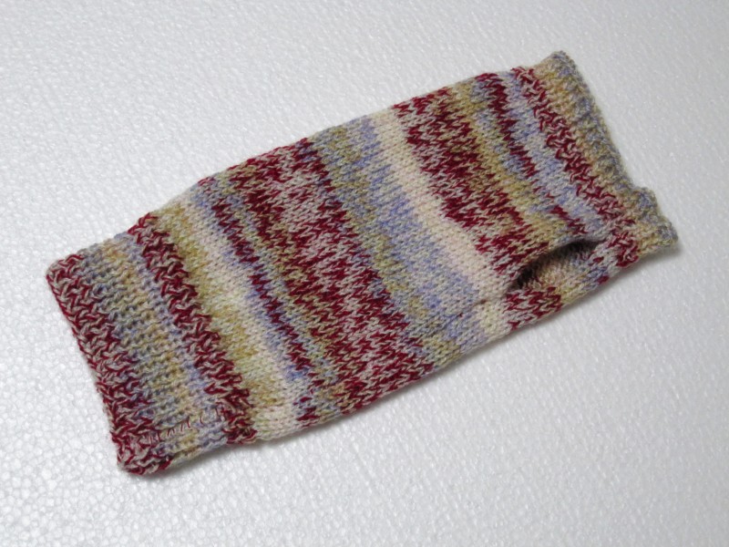 あんまり使い道が無いなぁと思っていた、派手な段染め毛糸を使用。