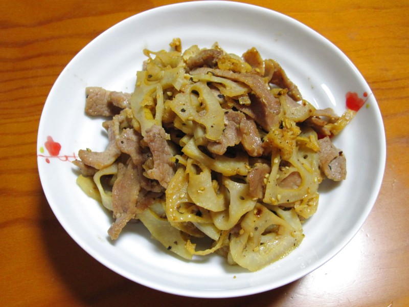 ↑豚肉とレンコンのきんぴらっぽい炒め物。
