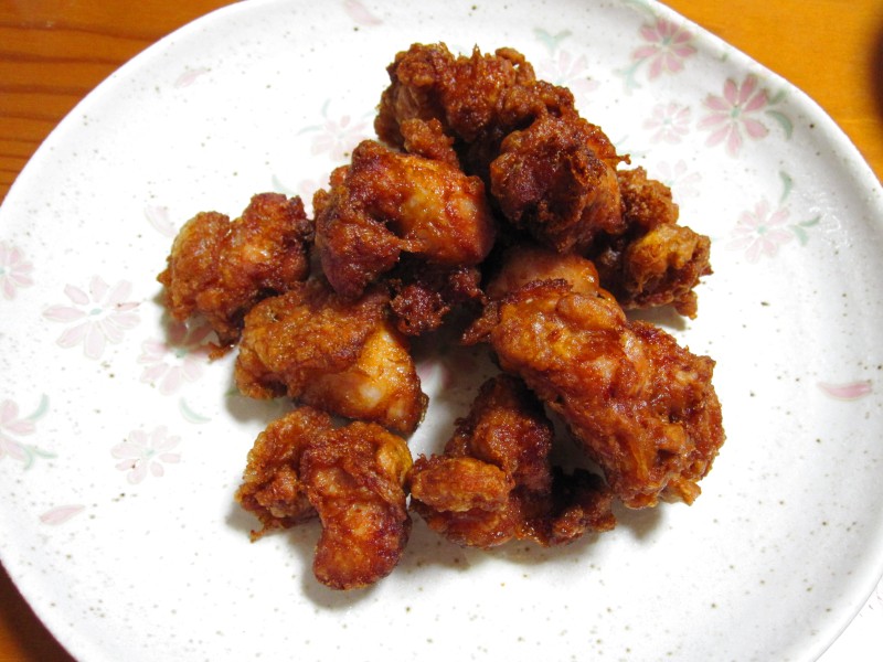 ↑鶏の唐揚げ。夫の人が揚げる鶏の唐揚げは、うまいなぁ。