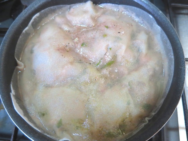 ↑具材がひたひたになるまで、白ワインを注いで煮込む。