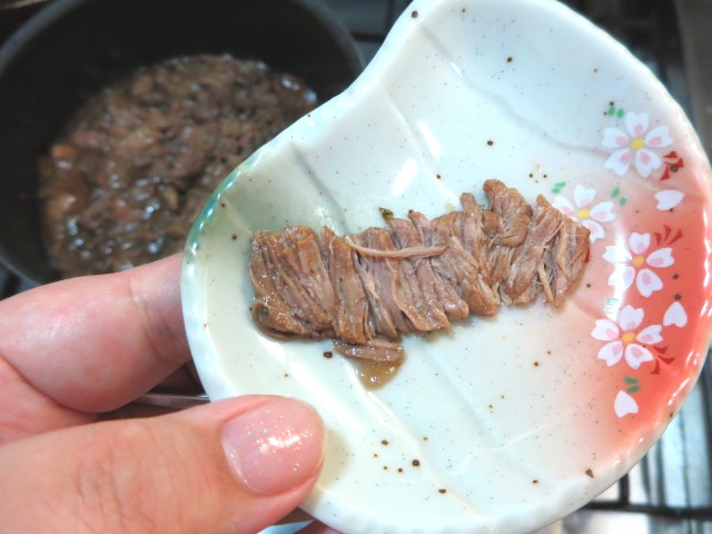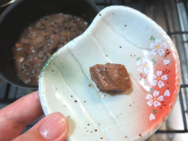 ↑肉の煮え具合をチェック。小皿に出して。。。