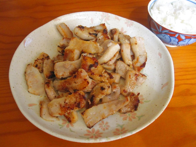 ↑鶏肉と玉ネギの塩ダレ炒め。