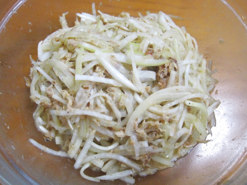 大根おろしと柚子ポンを加えて、ちょっと水分を飛ばす感じで炒めた。