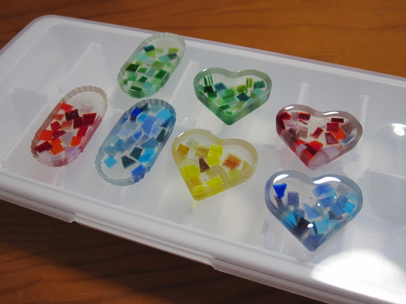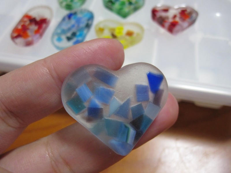 中に入れたガラスの透け感は、やっぱりレジンと相性いいと思う。