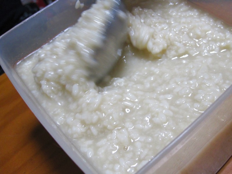 ↑今日の塩麹の様子。スプーンでかき混ぜ中。