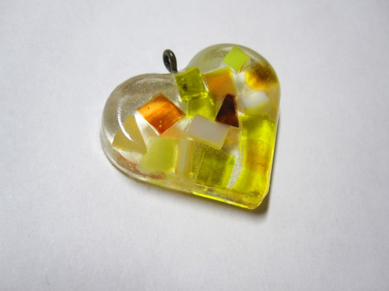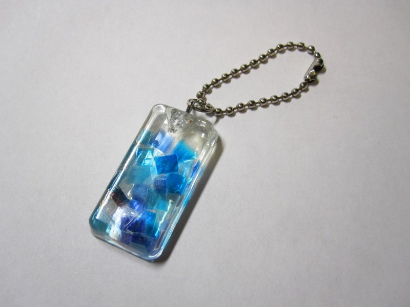 先月、ステンド用のガラスを入れて作った、レジンのキーホルダー。