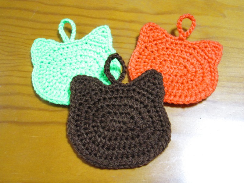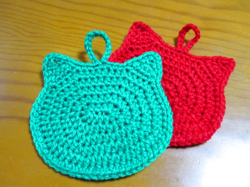 ちょっと細い糸は、かぎ針5号で、にゃんこタワシ。